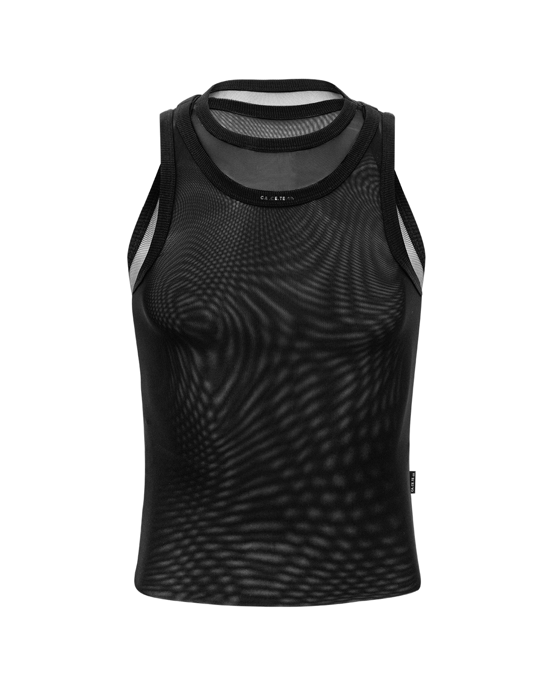 - Modelagem ajustada ao corpo, com acabamento fino nas cavas e gola