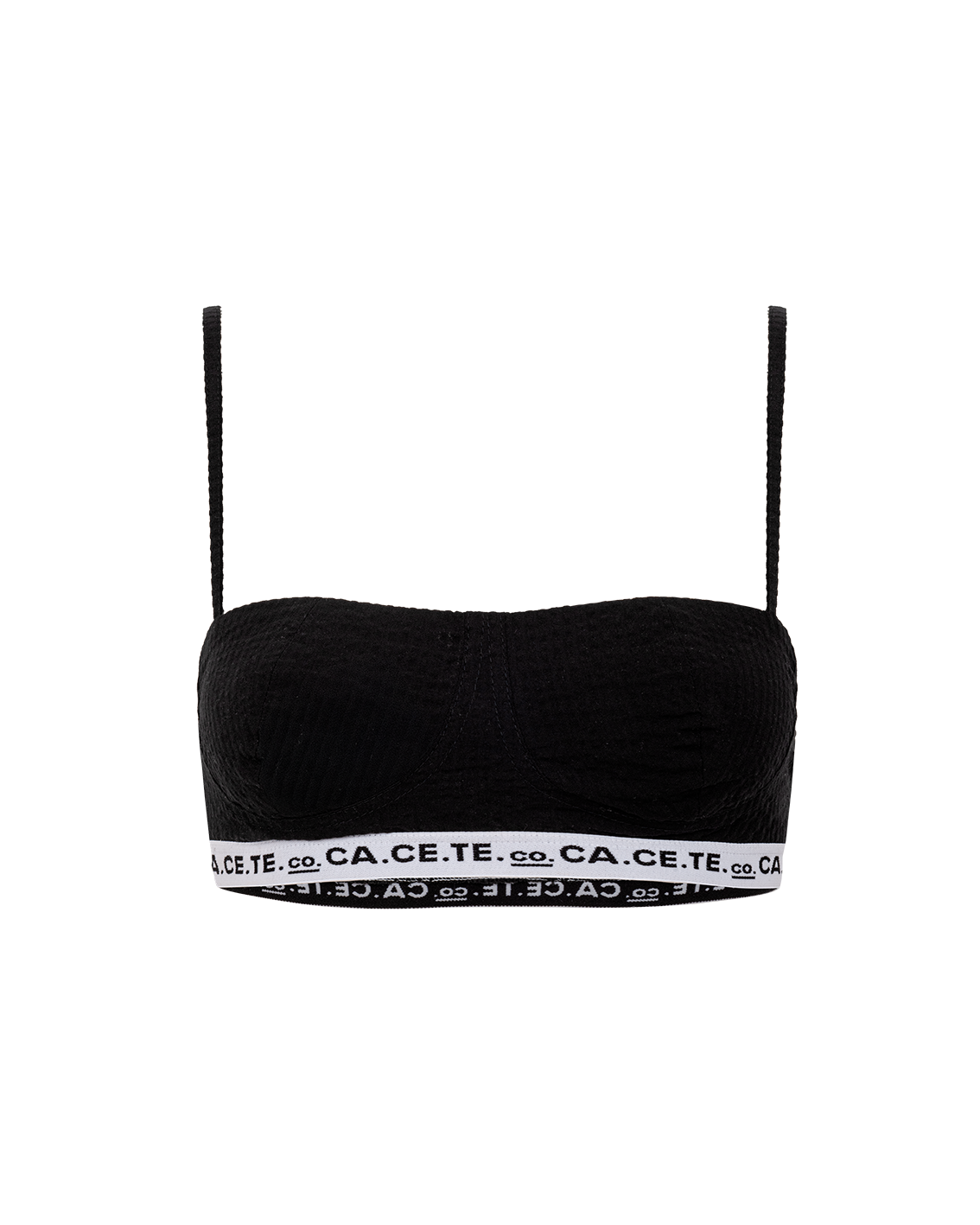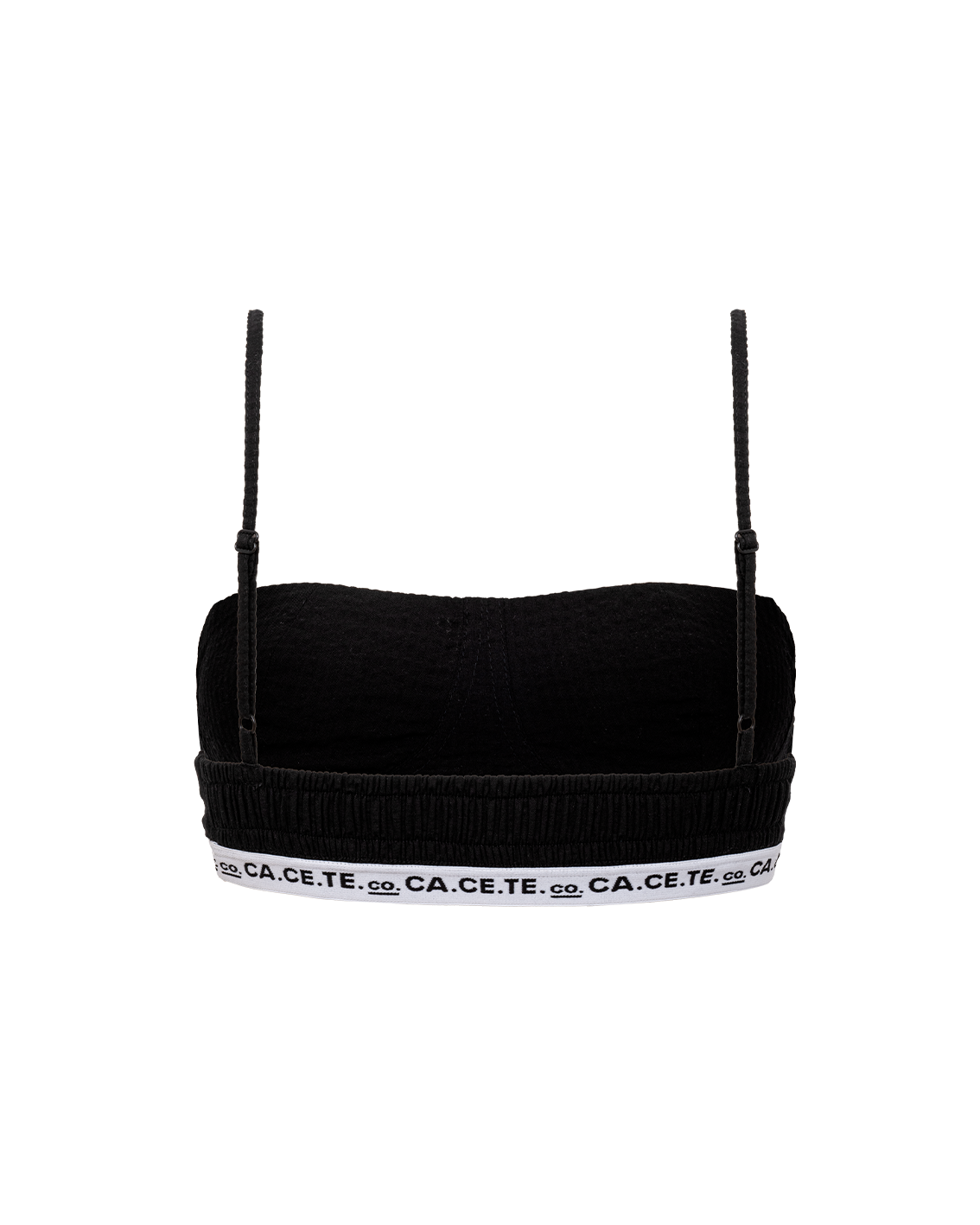 - Possui elástico personalizado CA.CE.TE.co. e ajuste franzido nas costas